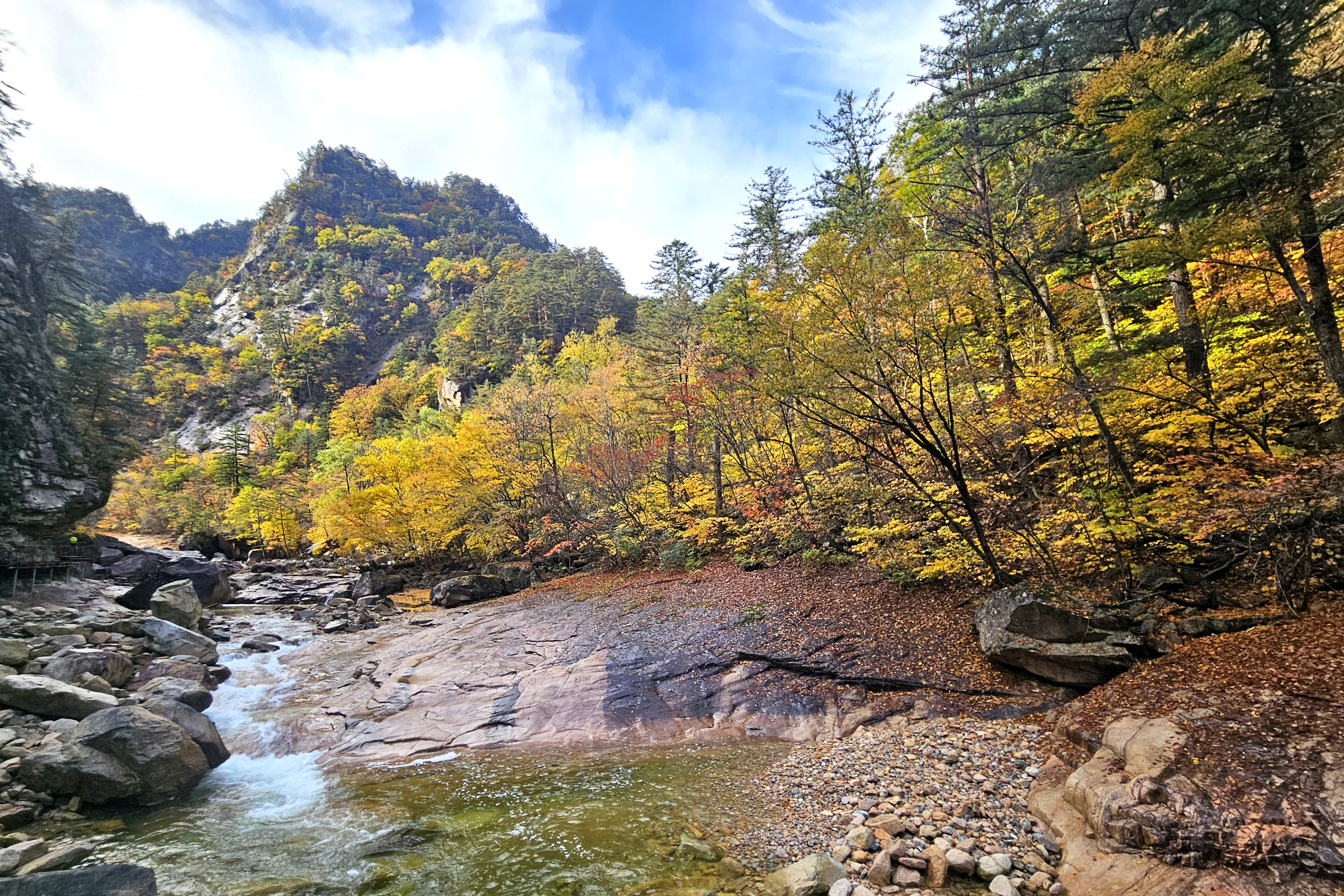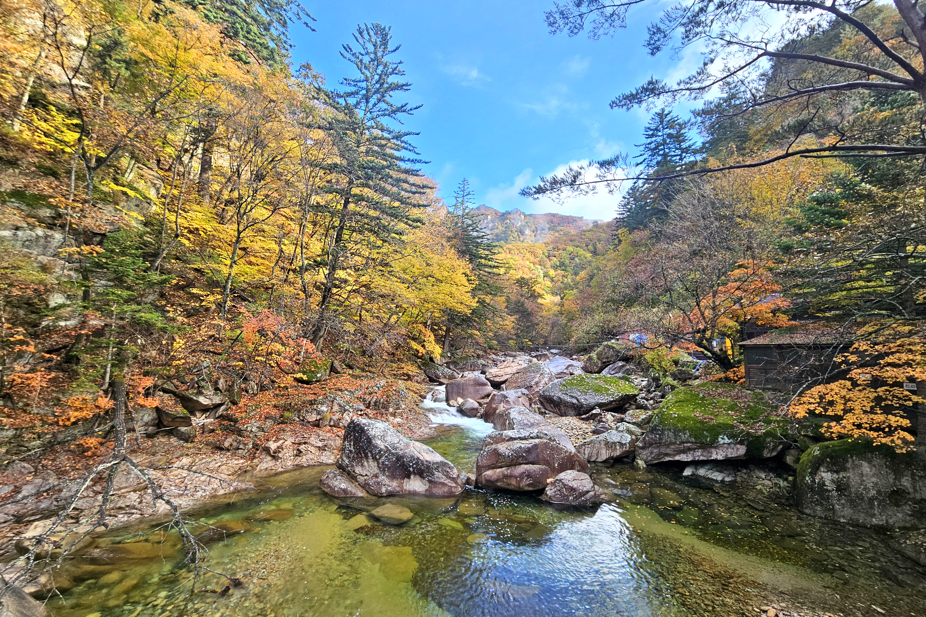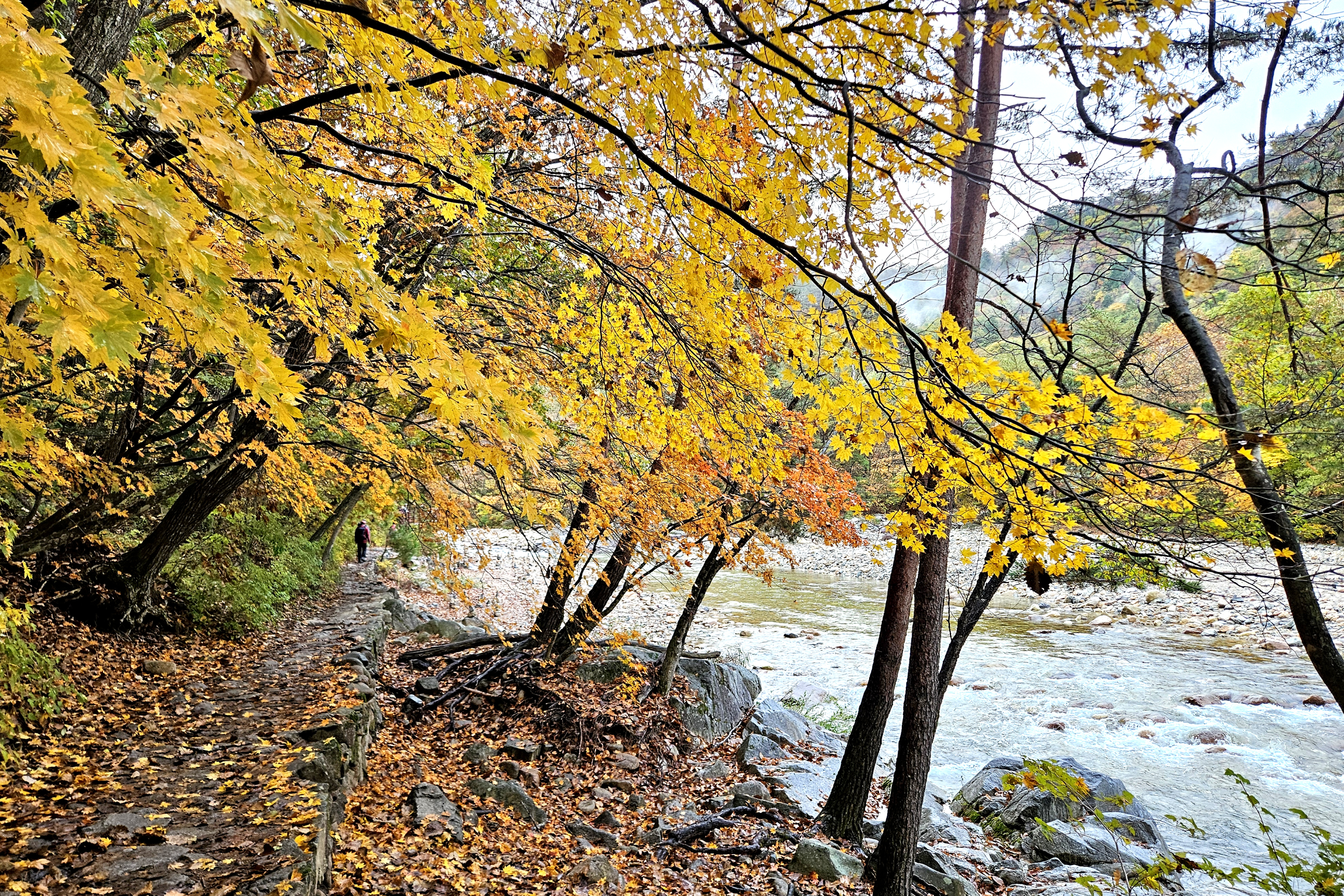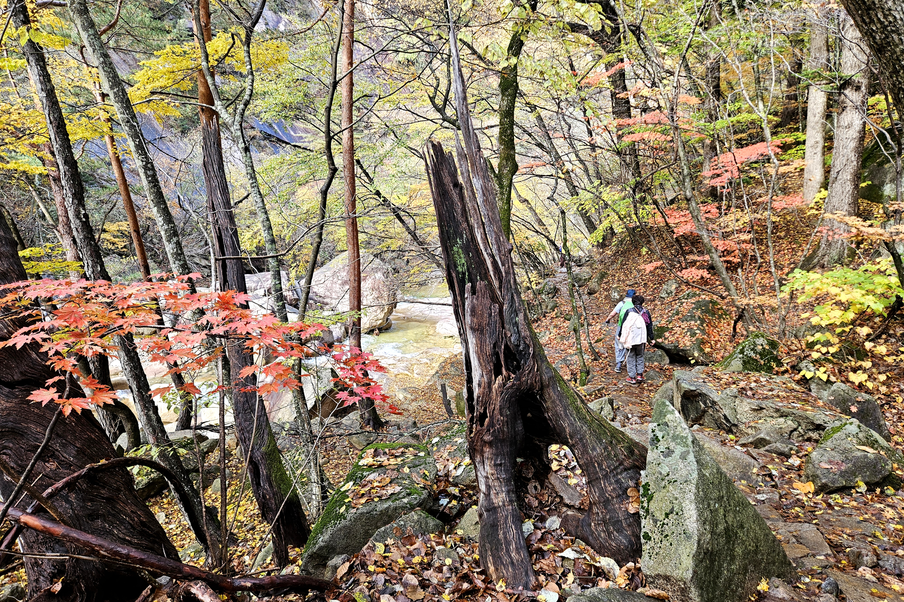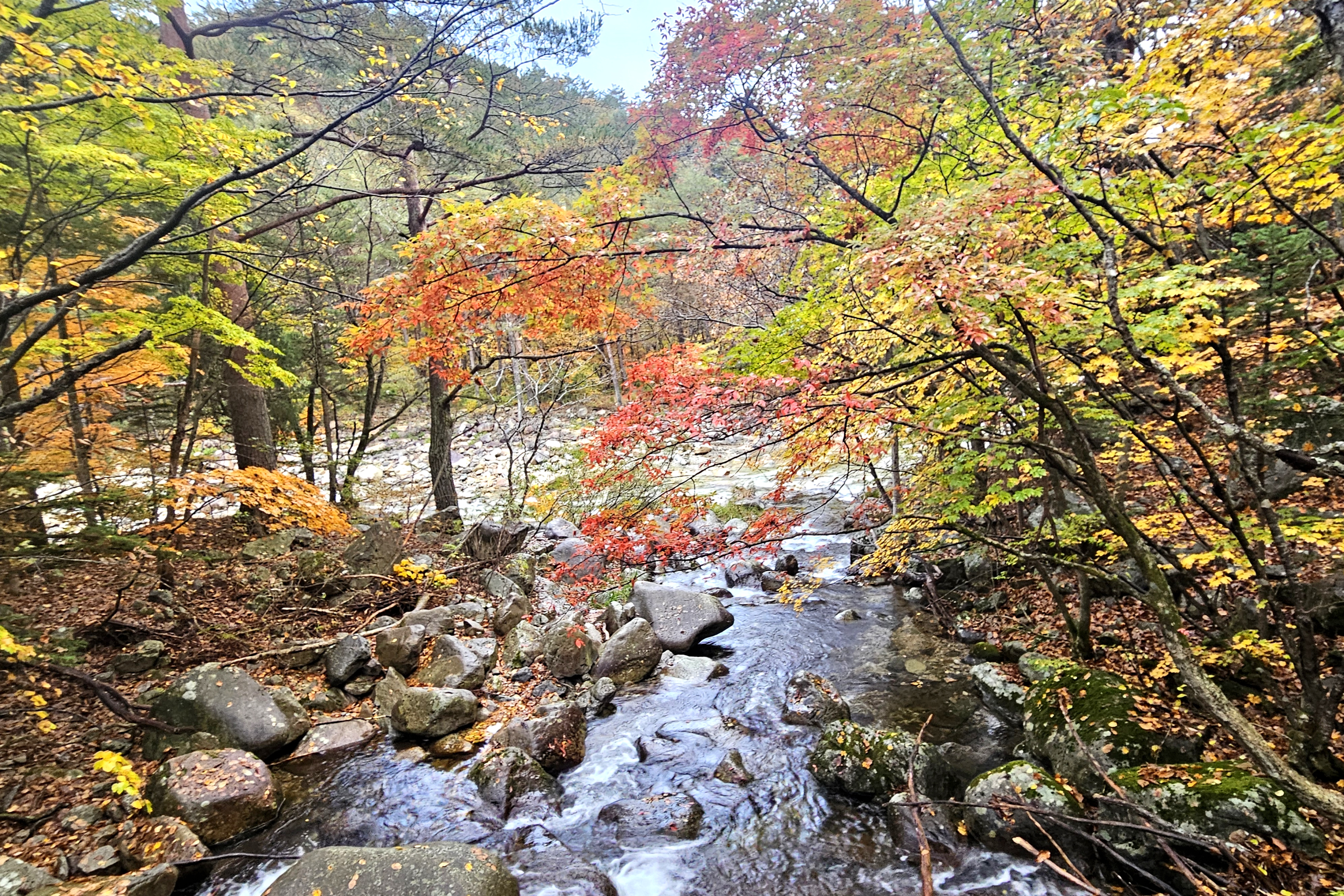 백담사에서 봉정암까지 오르는 봉정암 순례길 중 수렴동 계곡의 단풍