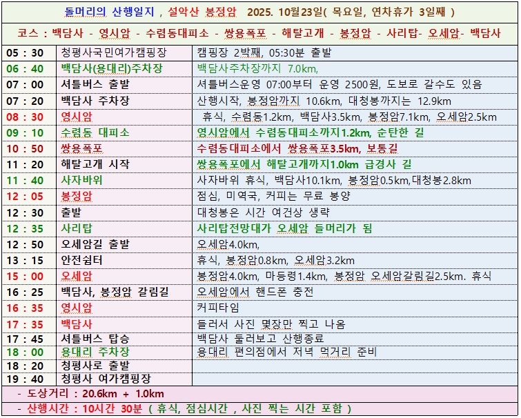 10월 21일부터 24일까지 3박 4일간의 강원도로 떠나는 4개 산행