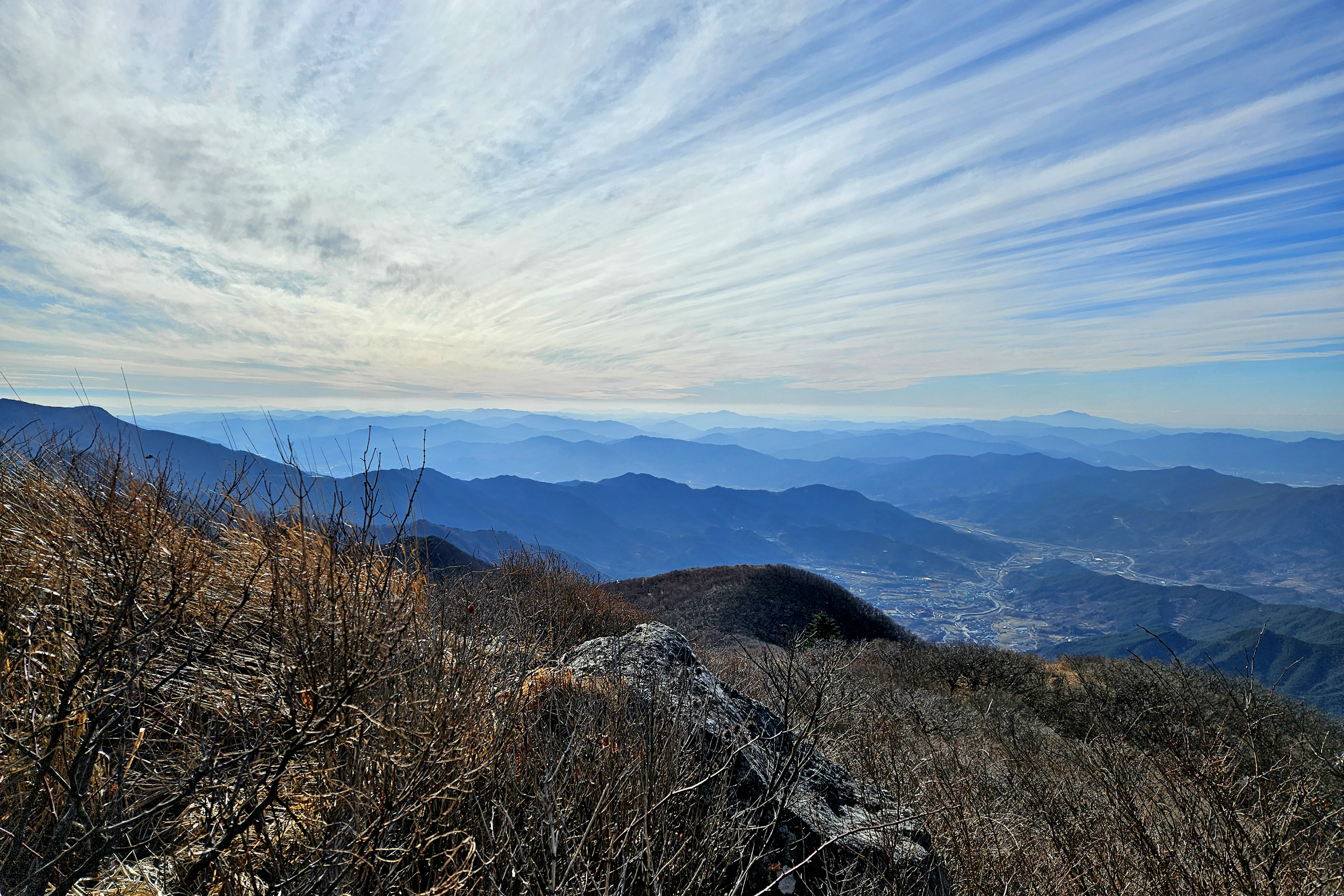 오봉산 뒤쪽으로는 가야산이나 황매산이 있을법한데 구분이 선명칠 못하다